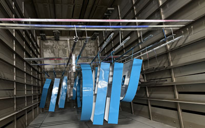 上塗りを終えた商品を乾燥炉に入れ、熱を加えて硬化乾燥させます。